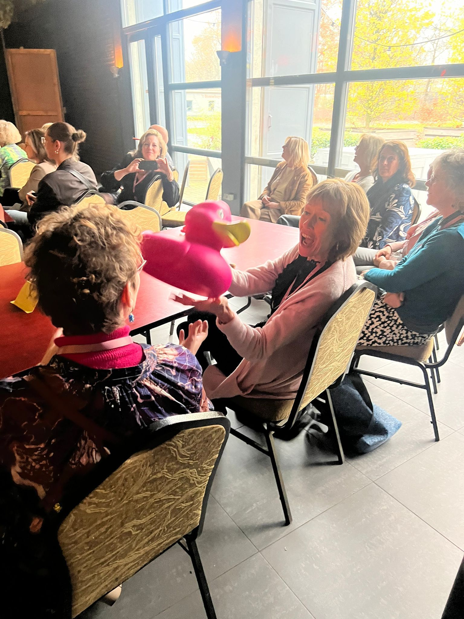 Na een heerlijke lunch met soep en gezonde broodjes, trakteerde BRIL Innovatie ons op een inspiratiesessie, waarbij we een reis maakten langs vernieuwende concepten. Dit deden we samen met Lotje – een knalroze badeend – die ons stimuleerde om letterlijk ‘out-of-the-box’ te denken. We ervaarden hoe belangrijk samenwerking is bij innovatie, want: ‘innoveren doe je niet in je eendje’.
