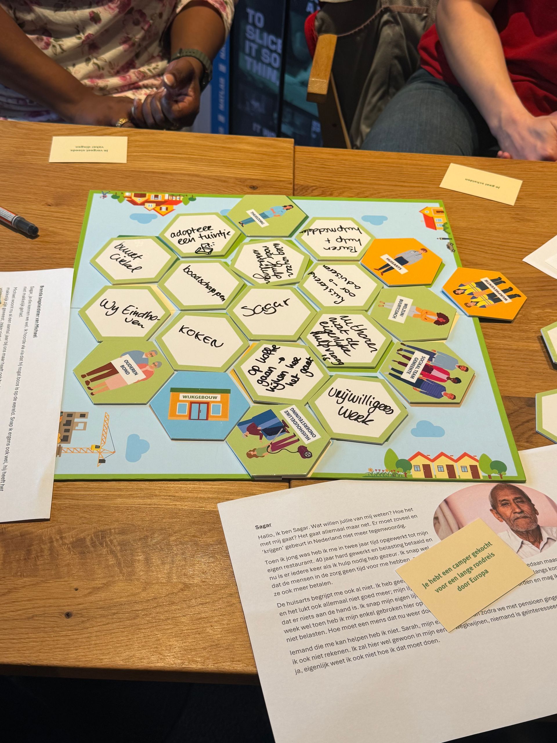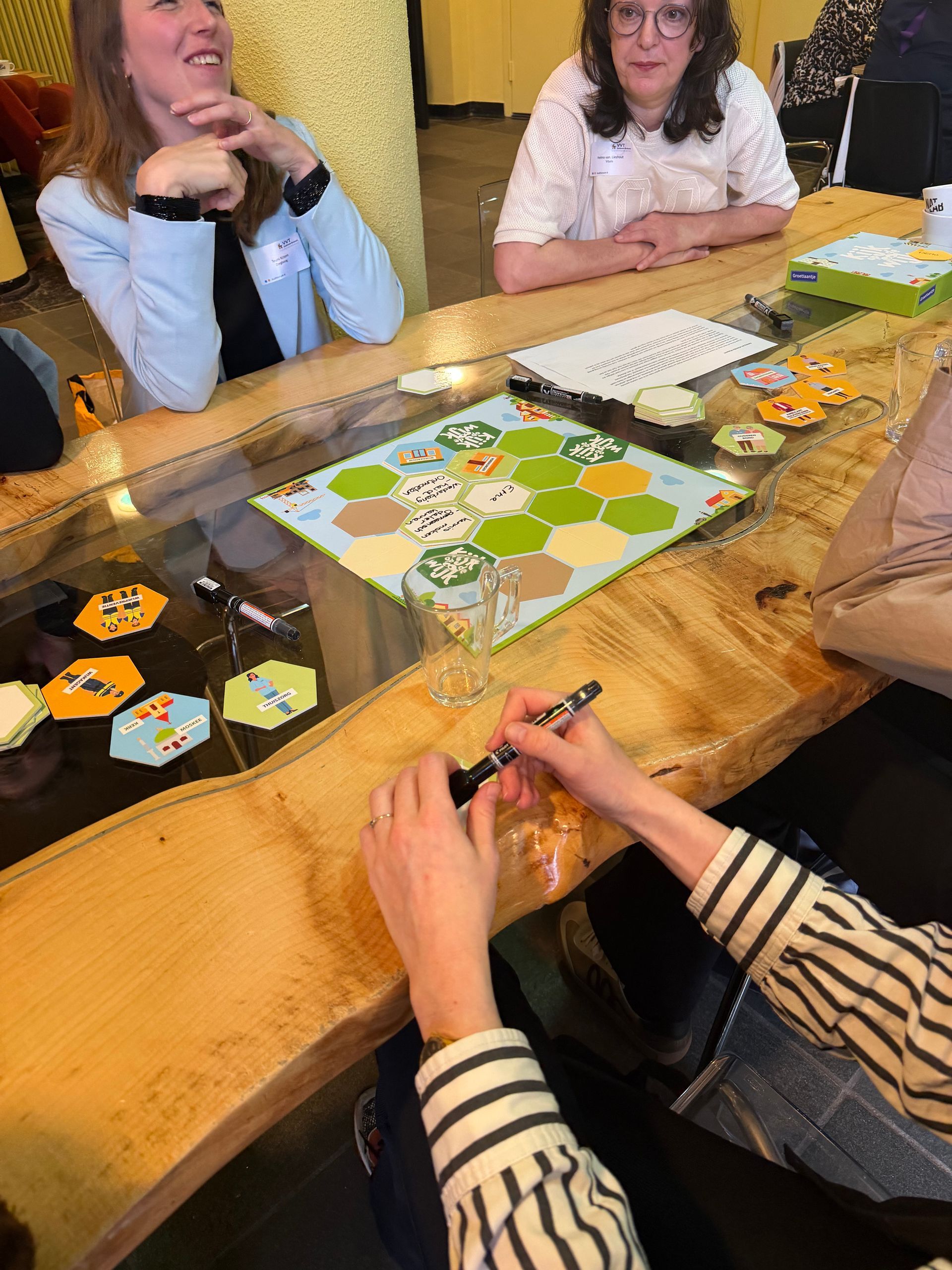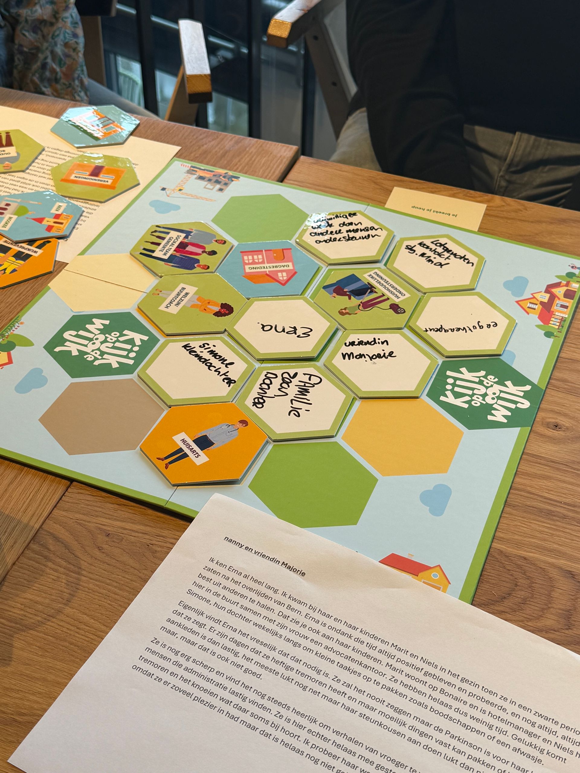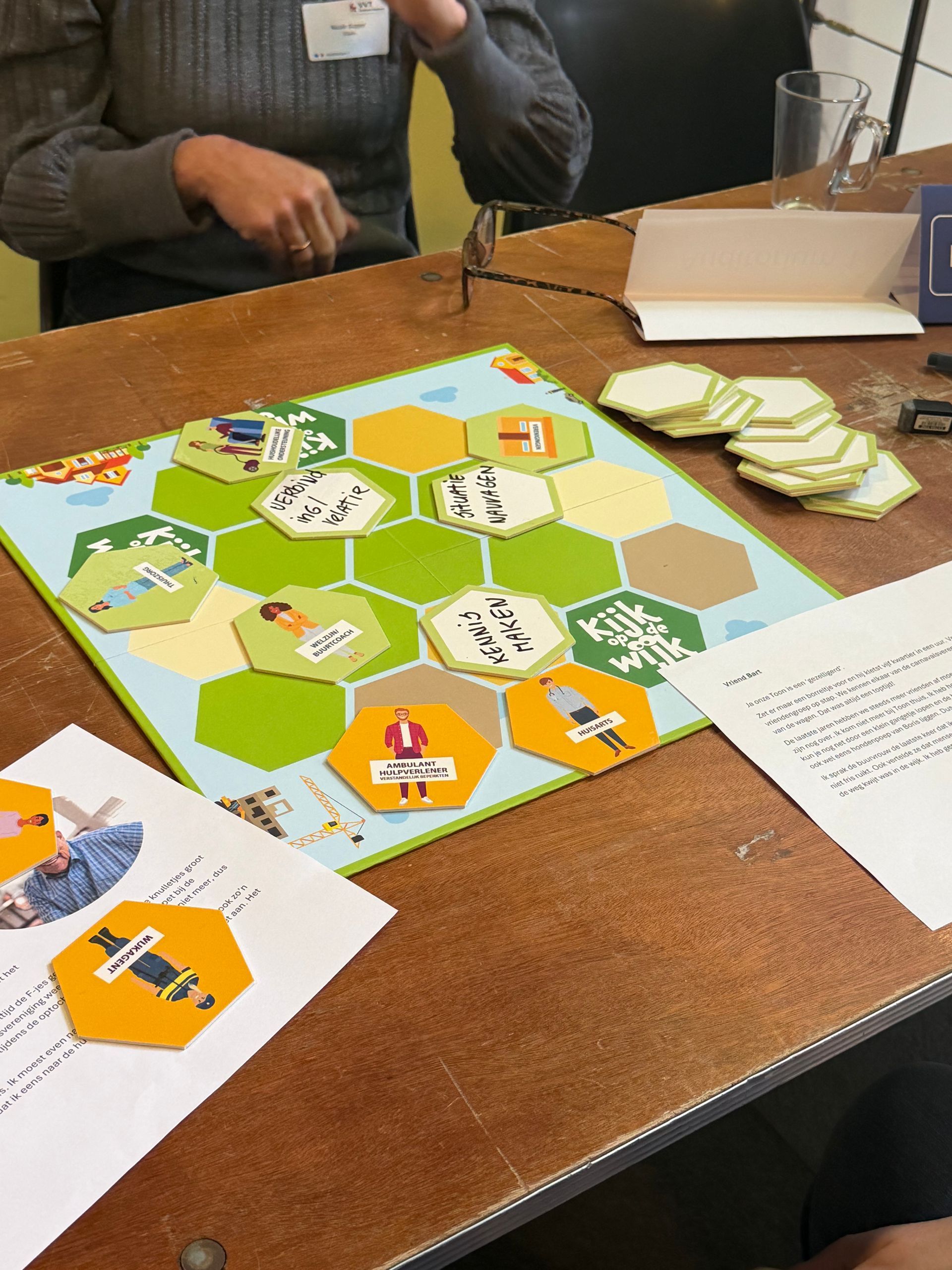 Tijdens het interactieve Kijk op de wijk-spel gingen deelnemers in gemixte groepen met elkaar in gesprek over de kracht van de wijk. We stapten in de rol van (wijk)bewoners en verkenden samen wat nodig is om zo lang mogelijk zelfstandig te blijven wonen. Daarbij stond één onderdeel van de Schijf van vijf centraal: wat kan het sociale en lokale netwerk betekenen?