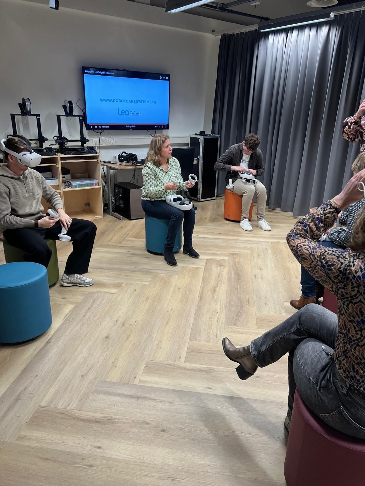 De bijeenkomst vond plaats in het bruisende Experience Lab van Summa Zorg en Welzijn. Hier werden we gastvrij welkom geheten door Melissa Jacobs, docent verpleegkunde bij Summa en Julia Smulders – Heijink, instructeur van het Experience Lab. Na een korte introductie en kennismaking met het practoraat, gingen we in twee groepen op ontdekkingstocht aan de hand van twee interactieve rondes.