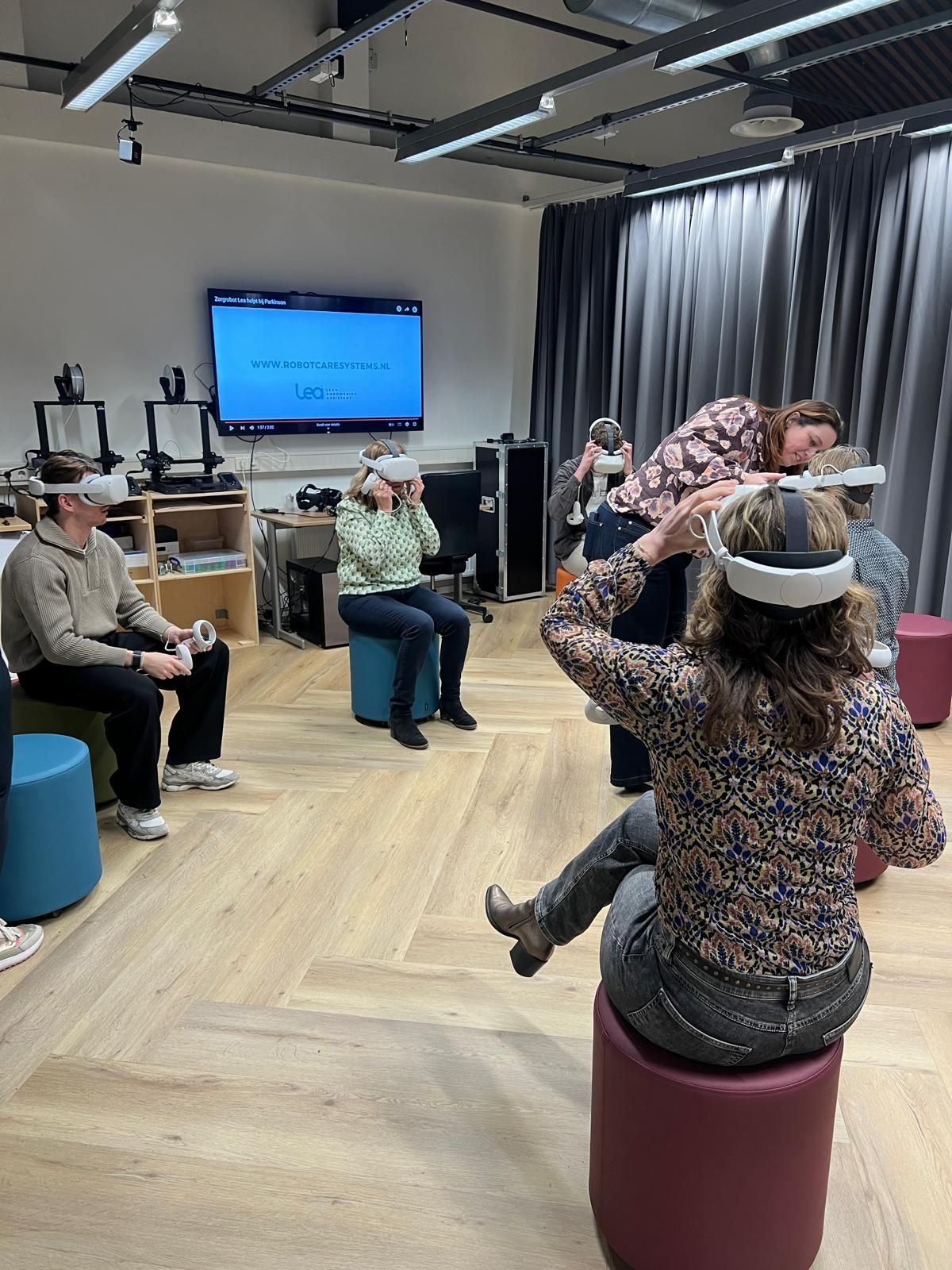Afgelopen dinsdag 10 december was het weer tijd voor een mooie bijeenkomst voor de projectleiders van het VVT Platform Zuidoost-Brabant. Tijdens de bijeenkomst gingen we met elkaar op ontdekkingstocht bij het practoraat Zorg en Welzijn van het Summa College in Eindhoven. Een bijzondere ervaring waarin we de belevingswereld van ouderen met dementie verkenden, de kracht van virtual reality (VR) ervaarden en leerden over de digitale bewegingsondersteuning van DigiRehab.
